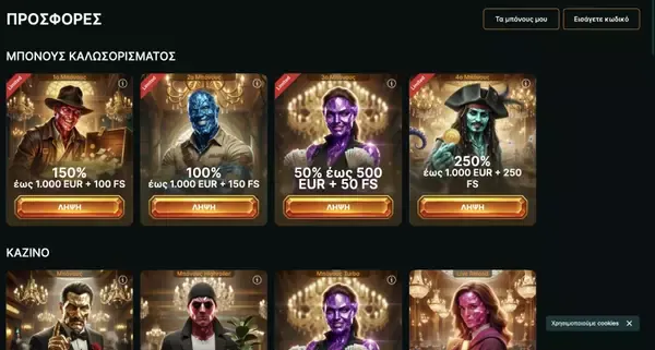 Η βασική προσφορά καλωσορίσματος καζίνο είναι ένα πακέτο πολλαπλών καταθέσεων: 700% έως €4.000 συν 700 δωρεάν περιστροφές. Η ελάχιστη κατάθεση είναι €20 και ο τζίρος είναι 35x, με τζίρο 40x στην 4η κατάθεση. Αυτή η δομή έχει σχεδιαστεί για παίκτες που σκοπεύουν να καταθέσουν περισσότερες από μία φορές και θέλουν μια μεγαλύτερη περίοδο καλωσορίσματος.